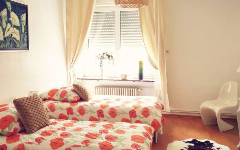 Profitez d'un logement élégant, lumineux et paisible au centre-ville (calme) avec toutes les commodités : pâtisserie, tabac-presse, coiffeur, banque etc. Cet appartement dispose de deux chambres avec des lits séparables, ainsi qu'un grand canapé convertible.