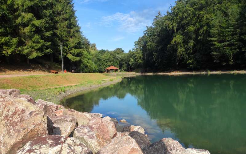 L'étang de la Papiermühle, une oasis à Hombourg-Haut. Vous pourrez profiter de sa tranquillité pour vous promener, mais aussi pour une halte gourmande avant ou après vous être aventuré dans l'impressionnante forêt qui l'enlace, puisque des tables de pique-nique sont disposées à côté de l'étang. Des bancs au bord de l'eau accueilleront vos rêveries et l'aire de jeux égaillera les plus petits.