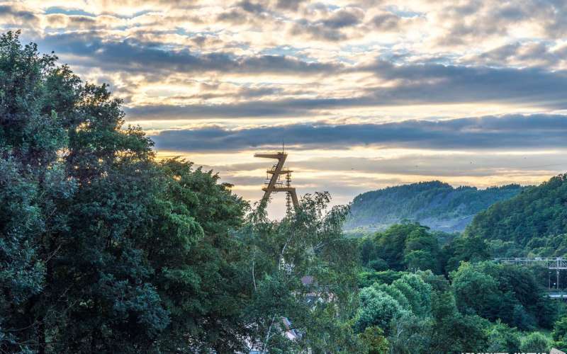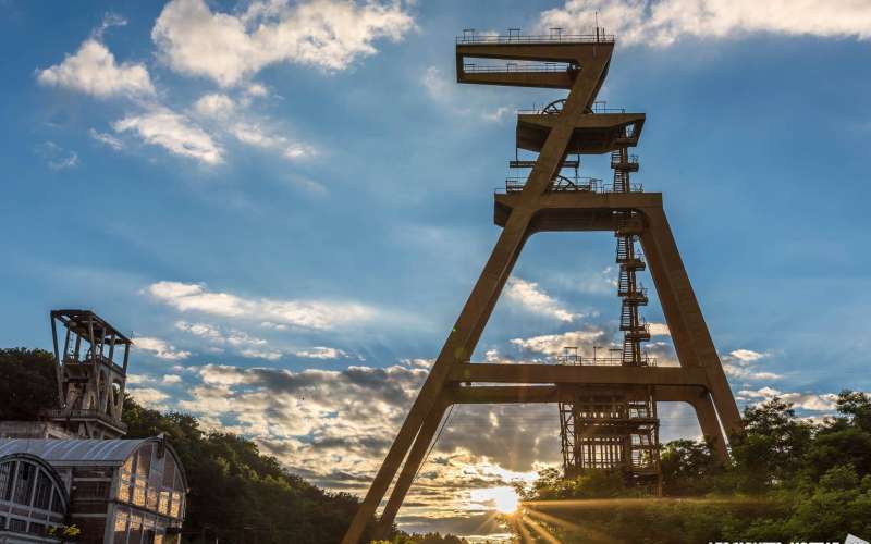 L'exploitation minière dans le bassin houiller s'arrêtait en 2004, avec les dernières extractions au puits de la Houve à Creutzwald. Les chevalements sont aujourd'hui les derniers temoins visuels de cette période d'exploitation dans le bassin houiller. "Les chevalements sont des portiques métalliques qui se trouvent au dessus des puits. Ils soutiennent une énorme poulie qui entraine la cage suspendue à un câble..." qui transportait les hommes et le matériel "vers le fond" et remontait le charbon "vers le jour". " Leurs silhouettes caractériques restent le symbole inébranlable de l'imagerie minière." Ext. Passion Charbon_Ed. Serpenoise. Foncés en 1930 les puits du siège de Cuvelette sont restés en exploitation jusqu'en 1972. Après la fermeture, ils ont été maintenus pour servir à l'aération des chantiers de Merlebach. Le puits Cuvelette sud, à droite, est le dernier chevalement en béton du bassin houiller et est inscrit à l'inventaire des monuments historiques. Celui de Cuvelette Nord, en métal, doit sa sauvegarde à l'installation d'antennes téléphoniques.