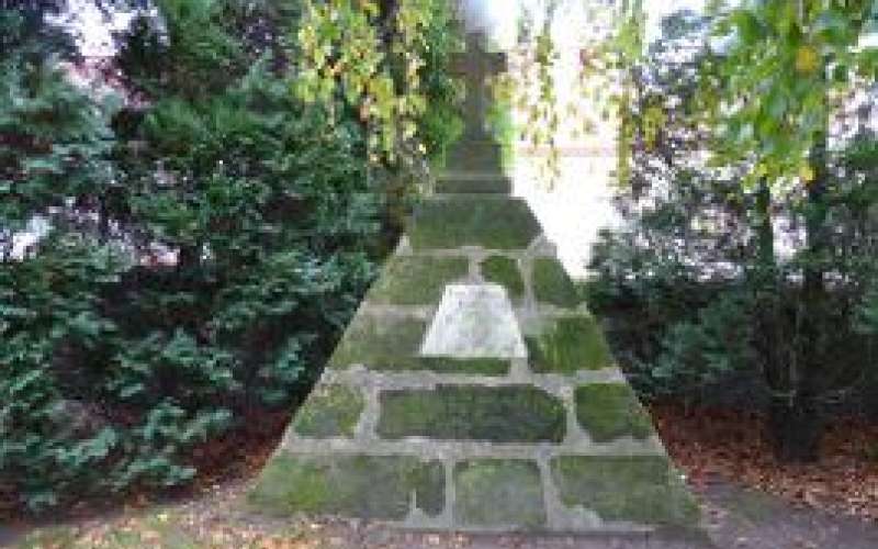 Qu'est-ce donc que cette pyramide ? L’étrange tombe-pyramide des Mangay sur l’ancien cimetière ou le chœur de l’ancienne église flanquée d’un calvaire.
